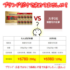 原材料名及び含有量:6年根高麗紅参70%(大手S社:50.85%)